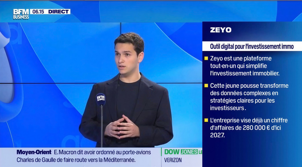 Ce matin sur BFM Business, c’est Solal, l’un des co-fondateurs de ZEYO, qui a défendu la vision de la startup devant des millions de téléspectateurs. Et il l’a fait brillamment. Investisseurs, professionnels de l’immobilier, entrepreneurs : tout le monde a pu voir ce que 6 000 clients savaient déjà. Être les plus jeunes fondateurs à pitcher sur le plateau de la première chaîne économique de France, ce n’est pas un détail anecdotique. C’est la validation par l’institution médiatique la plus exigeante du pays que ZEYO n’est plus une promesse : c’est une réalité.